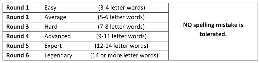 •Words are not written by either the judge or the contestant – they are directly pronounced.