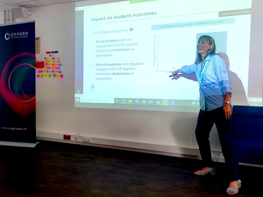 Louise Skeet, who is the head of the English Hub at Arden University, opened the day with compelling evidence from hundreds of EAP students across Arden University campuses, highlighting the vital role of English for Academic Purposes in student success. Her research demonstrated how well-designed academic English provision doesn't just improve language skills—it changes both the student experience and academic outcomes. Skeet's findings underscored that EAP is far more than language instruction; it's a bridge that enables students to fully participate in their academic communities.
